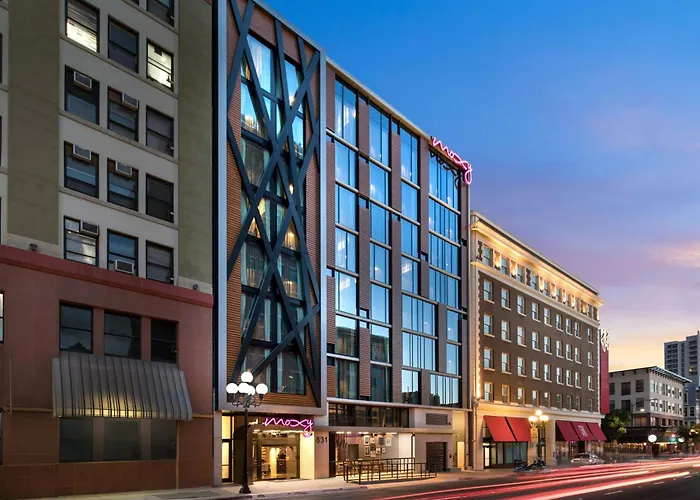 Das Hotel Moxy San Diego Gaslamp Quarter liegt in etwa 5 Gehminuten Entfernung vom Westfield Horton Plaza und bietet ein Restaurant. Das Hotel verfügt über einen Bankettsaal und ist ein paar Schritte entfernt vom Horton Plaza Park.